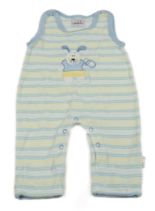 Bielo-modro-žlté pruhované zamatové na traké tepláky s psíkom