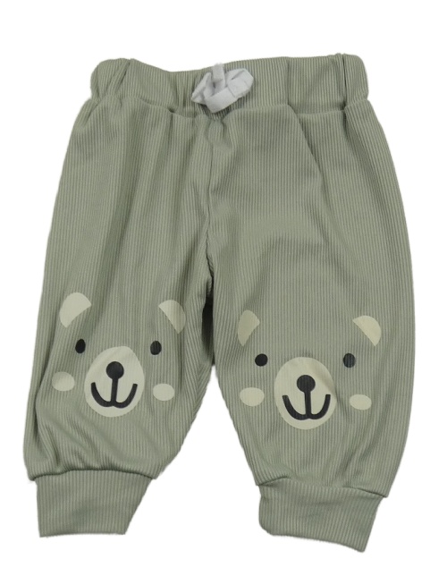 Khaki ľahké rebrované tepláky s medveďmi