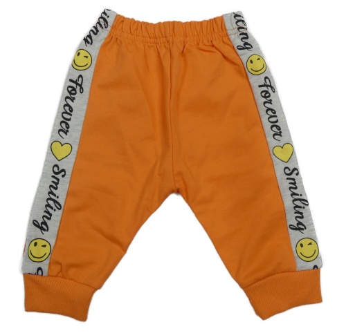 Neónově oranžovo-sivé tepláky s nápismi a smajlíkmi