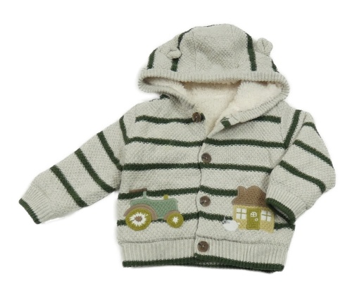 Šedo-khaki pruhovaný zateplený prepínaci sveter s traktorom a kapucňou Nutmeg