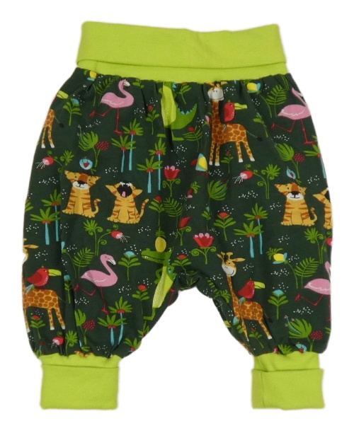 Tmavozelené baggy tepláky so zvířaty