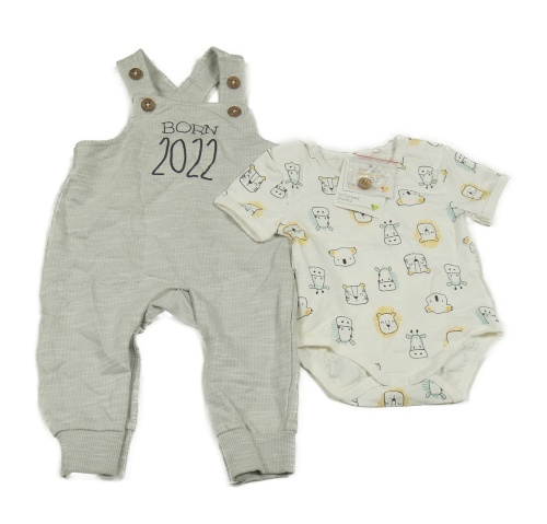 Nové - 2set - Svetlosivé pruhované na traké tepláky s číslem + smotanové body so zvířaty Topomini