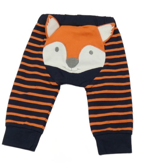 Tmavomodro-lososové pruhované tepláky s líškou Jojo Maman Bébé