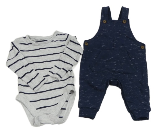 2set - Tmavomodré melírované na traké tepláky + sivo-čierne pruhované body F&F