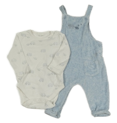2set - Svetlomodré melírované zamatové na traké tepláky so slony + biele body Next