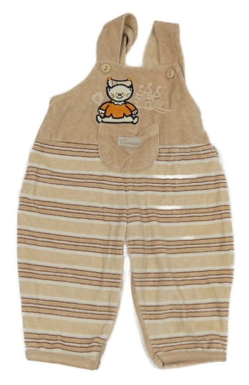 Béžovo-biele pruhované zamatové na traké tepláky s medvedíkom Topolino