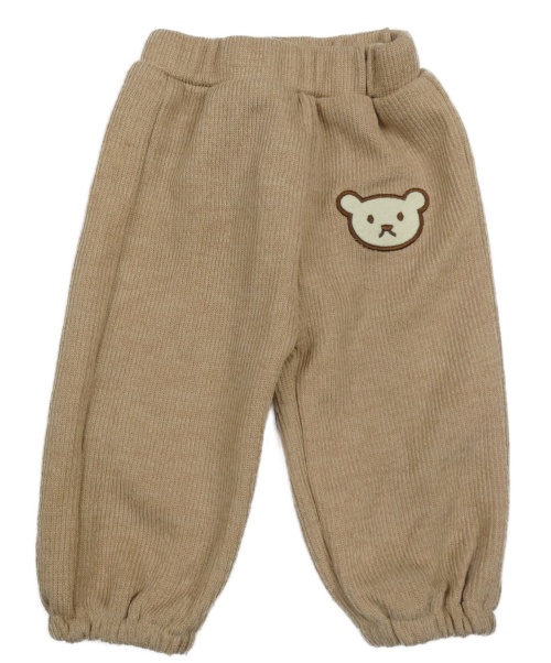 Béžové rebrované pletené nohavice s medvedíkom