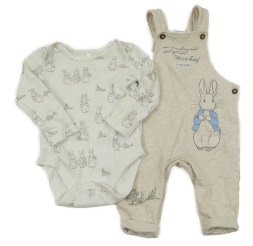 2 set - biele body s králíky + svetlobéžové na traké tepláky s králikom
