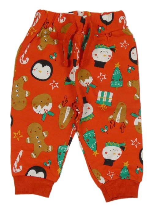 Červené tepláky s vánočními obrázky