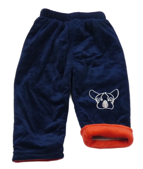 Tmavomodré plyšové zateplené teplákové nohavice s psíkom