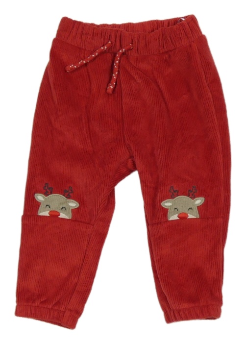 Červené rebrované plyšové tepláky so sobmi C&A