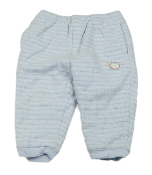 Světlemodro-biele pruhované zateplené tepláky s nášivkou