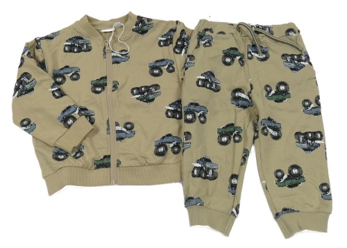 Nové - 2set - Hnědá tepláková souprava s monster trucky Name it