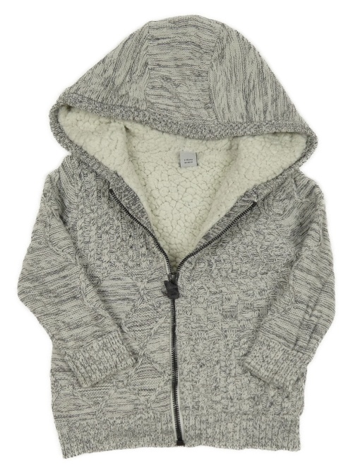 Sivý melírovaný zateplený prepínaci sveter s kapucňou Tu