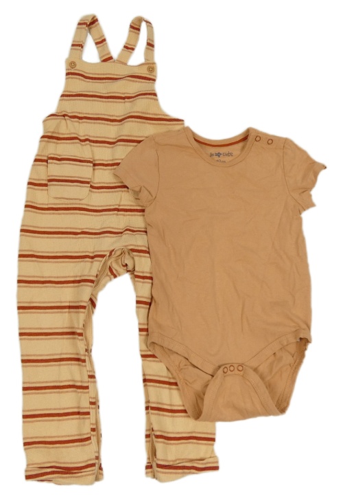 2set - Meruňkovo-vínové pruhované rebrované na traké tepláky + svetlohnedé body