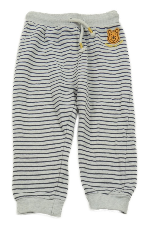 Sivo-tmavosivé pruhované tepláky s medvídkem Pú Disney