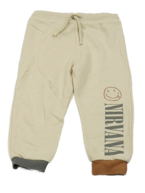 Světlebéžovo-hnedo-tmavosivé tepláky smajlíkom a nápisem - NIRVANA