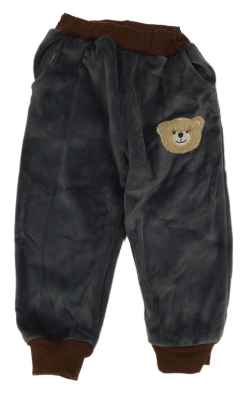 Tmavošedo/hnědé plyšové teplákové tepláky s medvedíkom