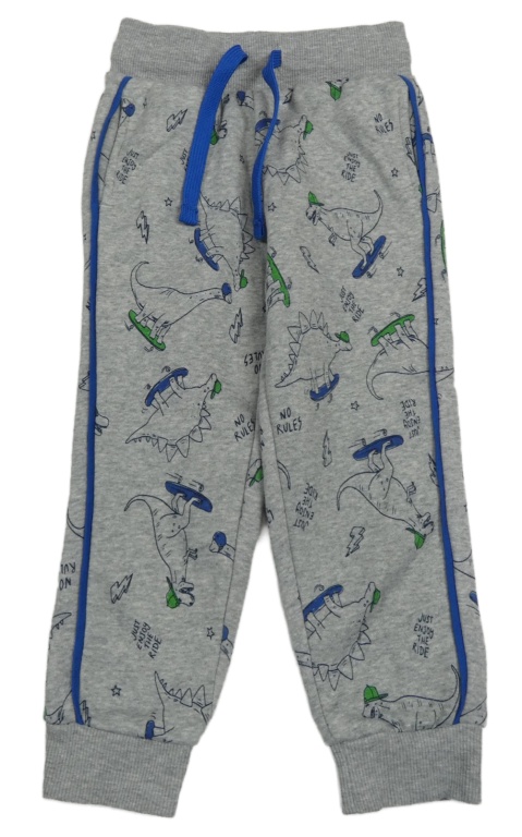 Sivé tepláky s dinosaurami a nápismi Impidimpi