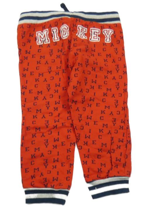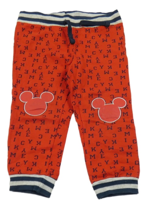 Červené tepláky s písmeny a Mickeym Disney