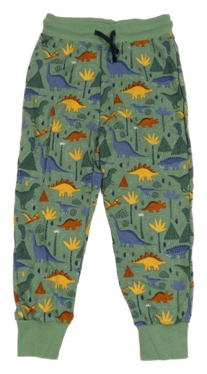Tmavozelené tepláky s dinosaurami a palmami a sopkami ALANA
