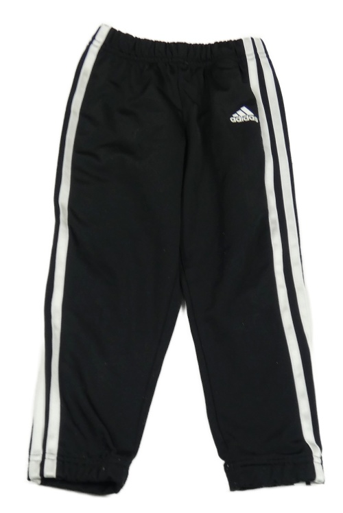 Čierno-biele športové tepláky s pruhmi a logom Adidas
