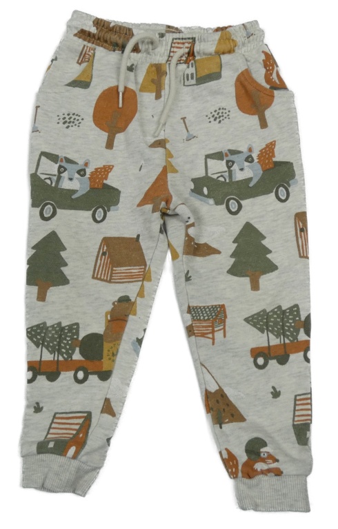 Sivé melírované tepláky so stromky a mývaly Tu