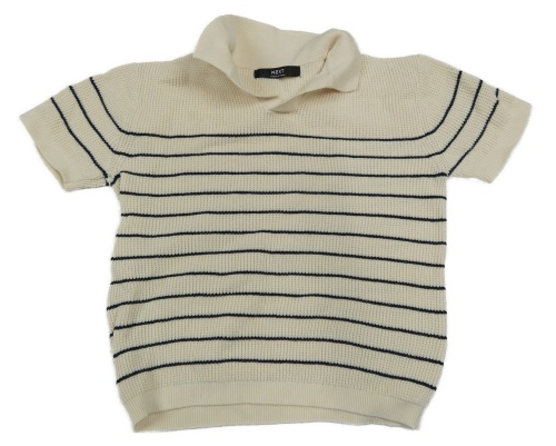 Béžovo-čierne pruhované úpletové tričko s golierikom Next
