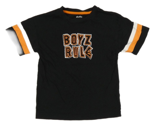 Čierne tričko s nápisom a pruhy na rukávech Studio