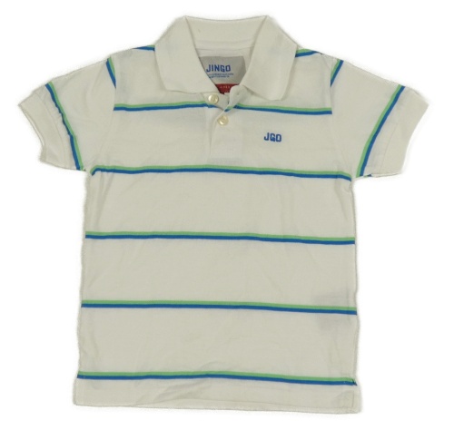 Bielo-modro-zelené pruhované polo tričko s logom JINGO