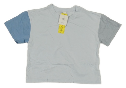 Nové - Světlemodro-modro-sivé crop tričko