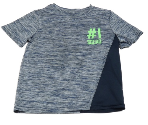 Tmavomodro-biele melírované funkčné športové tričko s nápisom a číslom Topomini