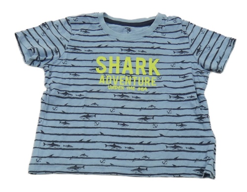 Modré pruhované tričko s nápisom a žralokmi Lupilu