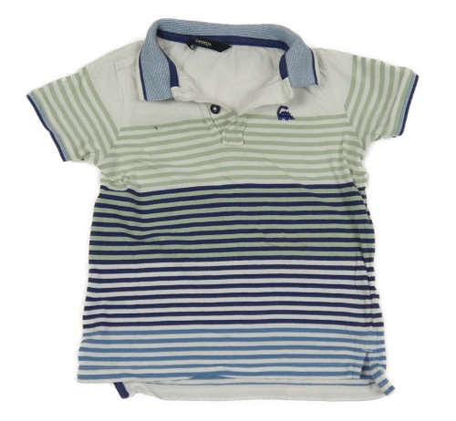 Bielo-tmavomodro-modro-olivové pruhované polo tričko s dinosaurom George
