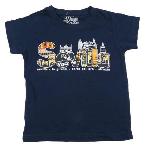 Tmavomodré tričko s nápisom a budovami
