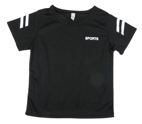 Čierne športové tričko s nápisom a bielymi pruhmi
