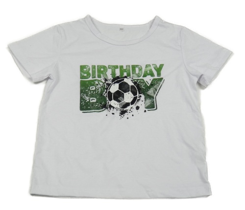 Biele tričko s nápisom a loptou