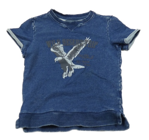 Tmavomodré teplákové tričko riflového vzhledu s orelom a nápismi Wild desert