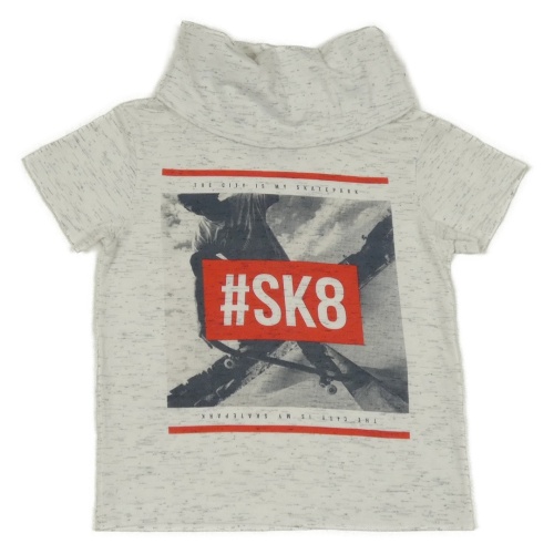 Biele melírované tričko so skateboardistou a komínovým golierom Rebel