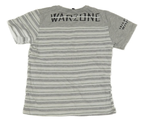Sivo-bielo-olivovošedé pruhované melírované tričko s nápisom