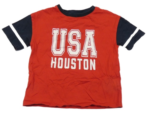 Červeno-tmavomodré tričko s nápisom kiabi