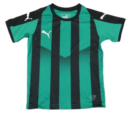Zeleno-čierne pruhované športové funkčné tričko s logom Puma