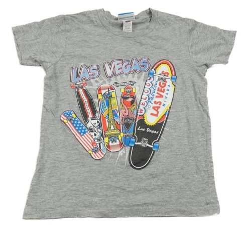 Sivé tričko so skateboardmi