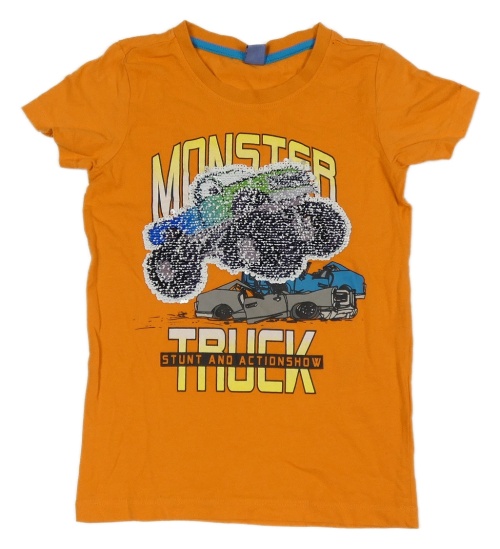 Oranžové tričko s autem z překlápěcích flitrů Dopodopo