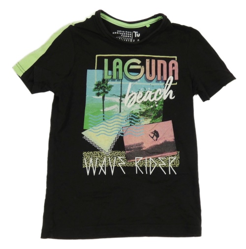 Čierne tričko s nápismi a palmou a zeleným pruhom Tu