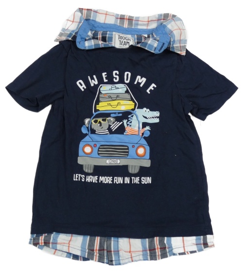 Tmavomodré tričko s autom a košilí C&A