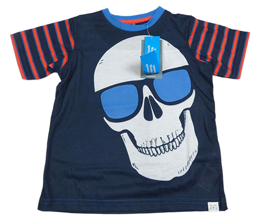 Nové - tmavomodro-modro-červené tričko s lebkou a pruhmi Harry Bear