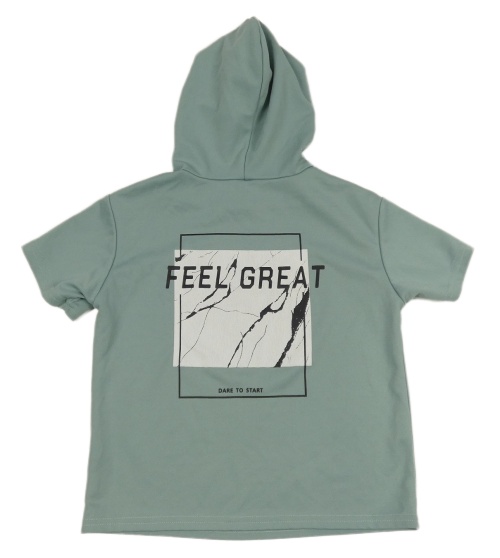 Šedoolivové tričko s nápismi a kapucňou SHEIN