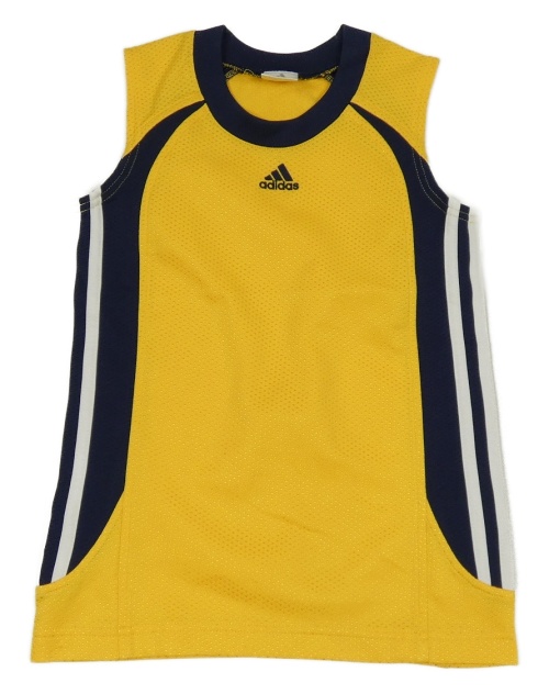Žlto-tmavomodré športové funkčné tielko s pruhmi Adidas