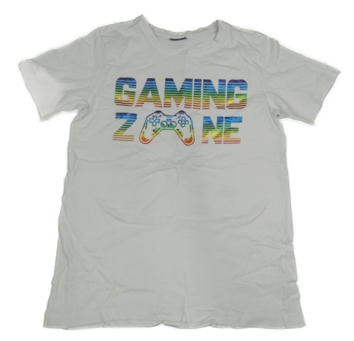 Biele tričko s nápisom a ovladačem